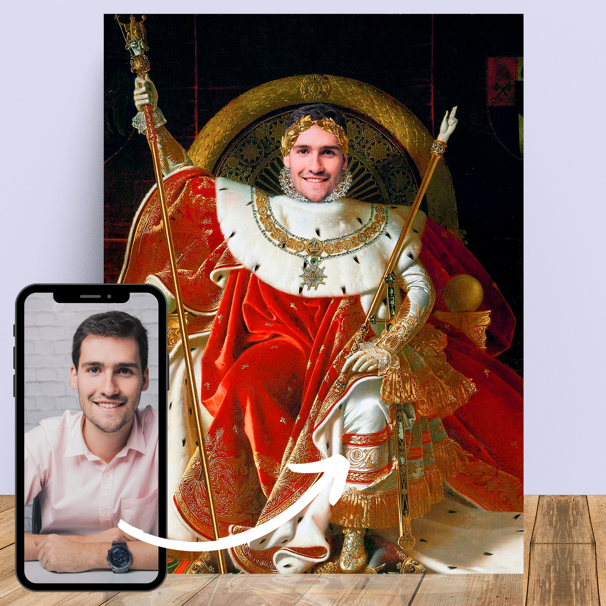 Asseyez-vous sur le trône de la grandeur avec un portrait personnalisé digne d’un roi.